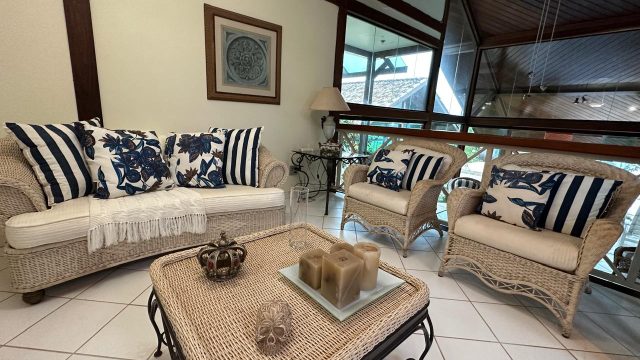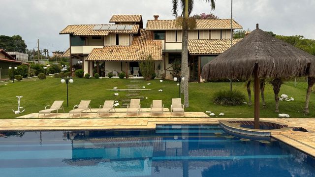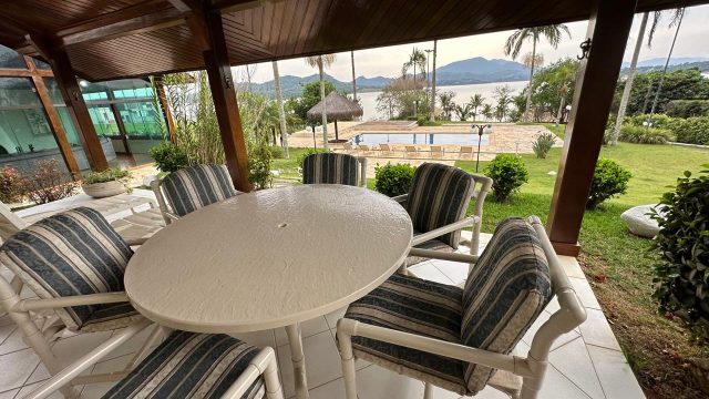 A casa principal, com uma área construída de 2.000 metros quadrados, é um exemplo de conforto e sofisticação. O projeto arquitetônico Rústico privilegia a linda vista e o grande visual da água, oferecendo uma integração perfeita com a natureza ao redor.