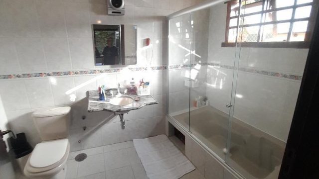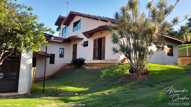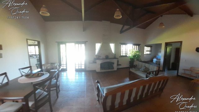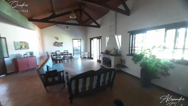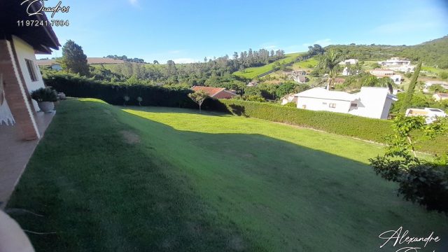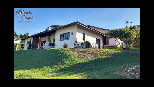 Além disso, a casa conta com 4 banheiros, 2 salas amplas, mezanino que pode ser transformado em quarto ou escritório, cozinha, lavanderia, terraço com uma vista deslumbrante, garagem para 3 carros e até um atelier de cerâmica. A topografia declive do terreno proporciona uma vista privilegiada, com muito verde ao redor, garantindo tranquilidade e contato com a natureza. O condomínio oferece uma infraestrutura completa, com quadra de tênis, lagos para pesca, academia, salão de festas, campos de futebol gramado, capela e diversas atividades sociais.