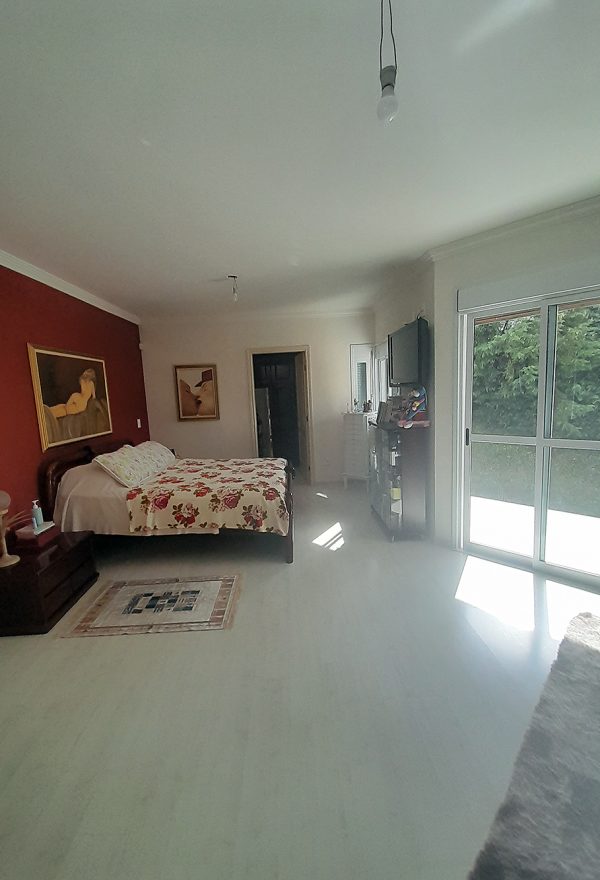No que diz respeito à área íntima, a casa dispõe de 3 dormitórios espaçosos e arejados. O destaque absoluto fica para a suíte master, que conta com uma banheira de hidromassagem privativa. Portanto, o proprietário tem à sua disposição um espaço de relaxamento profundo, onde o conforto térmico e a privacidade são garantidos.