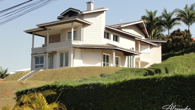 Belíssimo sobrado, 3 dormítórios sendo uma suíte master com hidro, e mais 1 quarto ao lado da garagem. Terreno de 1625 m² e área construída de 326 m², Condomínio Fechado Jardim das Palmeiras em Bragança Paulista-SP. Sobrado com uma arquitetura clássica