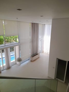 A casa conta com janelas automatizadas, oferecendo praticidade, modernidade e maior aproveitamento da ventilação e iluminação natural.