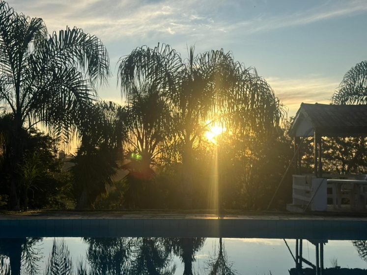 A propriedade ainda oferece um cenário deslumbrante, com lago, que reflete a tranquilidade do local,