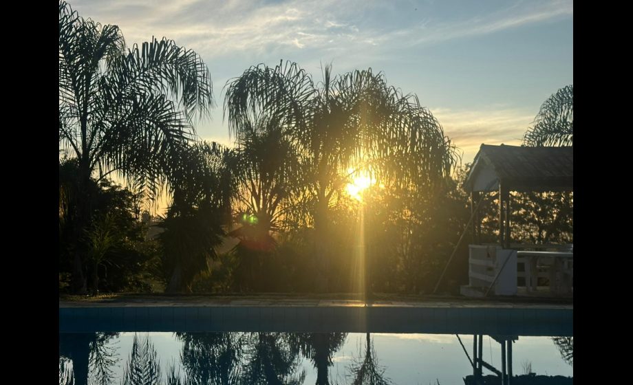 A propriedade ainda oferece um cenário deslumbrante, com lago, que reflete a tranquilidade do local,